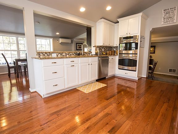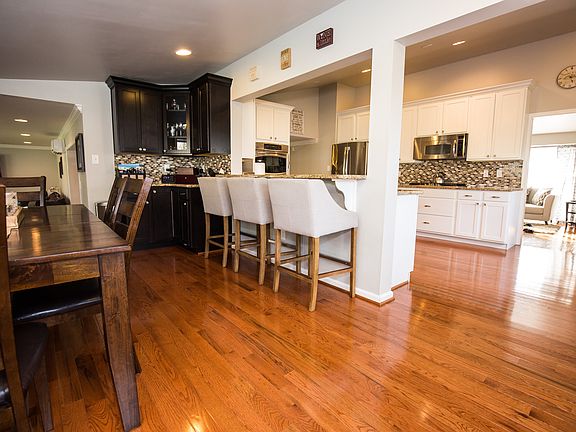 Lovely 4 bedroom 2 bath home w/ spacious rooms, replacement windows, & many hardwood flrs. Kitchen and Den were remodeled in 2012, creating a gorgious modern living space. Living Rm has hardwood, vaulted ceiling & bay window. Dining Rm has crown molding, wall to wall. Living Rm has vaulted ceiling, recessed lights & hardwood. Oak cabinets surround perimeter of Kitchen w/hardwood, corian counters, Kenmoore Elite side by side refrig & dishwasher, trash compactor, Whirlpool electric smooth top range/oven & GE microwave. Built-in bookcases & parquet floors accent the Rec Rm. 1st floor Bedroom has 2 completely outfitted closets & wall to wall, a private Bath with walk-in shower, sink/vanity, framed mirrored medicine cab & hardwood. Spacious 1st flr Laundry has 2 large closets, utility sink, washer & dryer, counter & hardwood. Master Bedrm has crown molding, recessed lights, 2 closets. The Bath has sink/vanity with triple mirror med cab, stall shower, Whirlpool tub & hardwood. Bedrm #3 & #4 has wall to wall,