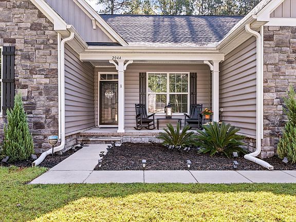 Welcome to 2044 Tacoma Circle, a charming slice of Lowcountry paradise located in the heart of Ridgeville in the highly sought after Carolina Bay neighborhood. This meticulously crafted home, built in 2020, has 2924 SQFT of living space including a 134 SQFT sunroom addition. The home is all on one level and has 3-bedrooms, 2.5-bathrooms, a beautiful eat-in-kitchen that opens to a spacious great room, a separate formal dining room, and a laundry room. The home has gorgeous curb appeal with grassy lawns and tasteful low maintenance landscaping, a welcoming front porch, an architectural shingled roof, soft taupe vinyl siding with creamy white trim accented with rustic stone pops, and a beautifully paved driveway with brick inlay that leads to the attached side-entry two car garage.The huge backyard is fully fenced with stained wood privacy fencing making the space safe and secure for children and pets. There are also TWO spacious patios ideal for entertaining large groups of family and friends or just relaxing with your favorite beverage. In addition, there is a storage shed that conveys, ideal for housing outdoor toys, gardening equipment or outdoor furniture and/or cushions. There are tons of designer details discerning buyers will appreciate such as custom wall installations, shiplap accents, calming neutral wall colors, luxury vinyl plank flooring in a driftwood tone, recessed lighting, crown molding, 9'+ smooth ceilings, ceiling fans, and modern lighting and fixtures throughout. The eat-in-kitchen is a dream with gleaming granite countertops, bright white cabinetry, a stunning tile backsplash, a spacious kitchen island with a countertop breakfast bar, stainless steel appliances (SELLER MADE SURE THE STOVE IS PLUMBED FOR GAS IF DESIRED), and a butler's pantry! The owner's suite is a true retreat that has a stately tray ceiling design, a ceiling fan, a walk-in closet, and a spa-like ensuite bathroom complete with a spacious double sink vanity, private toilet closet, ample storage, and an oversized shower with gleaming glass doors and a built-in shower bench. The home offers a perfect blend of southern comfort, modern conveniences, and smart-stylish design. 2044 Tacoma Circle is situated in the family-friendly Carolina Bay community with nearby schools and easy access to major highways, making your daily commute a breeze. The charm of Ridgeville and Summerville and the vibrant city of Charleston are all within reach, offering an array of shopping, dining, service, healthcare, and entertainment options. With a serene setting and modern amenities, this property, nestled on 1 beautiful Lowcountry acre, is a true gem in the real estate landscape. If you're seeking a move-in ready home with a tranquil setting yet close to everything you need, 2044 Tacoma Circle is the perfect choice. Don't miss the opportunity to make this dream home yours and experience the quintessential Lowcountry lifestyle.