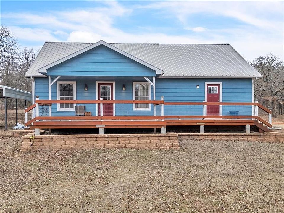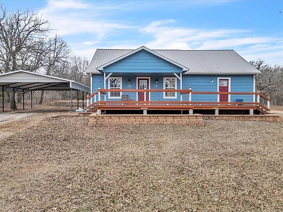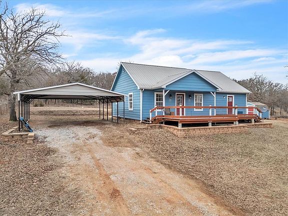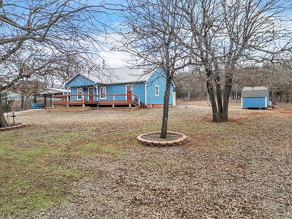 Adorable 3 bed 2 bath home on 2.53 ACRES!!! The large covered porch front invites you to stay and enjoy the quiet of country living. The living room features a beautifully tiled fireplace flowing into the dining area and spacious kitchen. The hallways leads to all 3 bedrooms and baths. Master bedroom at the back includes a full bath and door outside to the covered front deck. Laundry room has a large counter & cabinets and access to the covered backyard patio. Covered back patio includes room to relax and the storm shelter and storage building. The property around the house is fully fenced and grassed making a great place for pets and family to enjoy. The back of the property is all natural and ready for you to add a garden, pasture, animals, whatever your heart desires! So many possibilities. NO HOA!