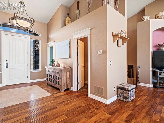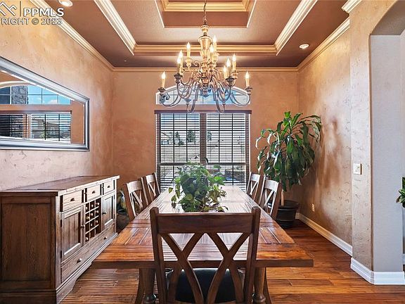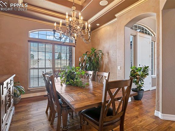 This luxurious 5 bed, 4 bath home located in the prestigious Kings Deer Golf Community is a must-see! With almost 5000 sq ft of living space and a 2.5 acre lot, this dreamy home offers endless possibilities for entertaining and relaxing. The open floor plan includes an impressive gourmet kitchen with slab granite counters, stainless steel appliances, large pantry and gas stove – perfect for creating delicious meals. Enjoy cozy evenings by the double-sided stone fireplace or take your movie night to the next level with a theatre room boasting built-in surround sound speakers. For added convenience, an oversized 3 car garage allows you to store all your vehicles and toys easily! And when it’s time to unwind from a long day, retreat to the main level master suite featuring sitting area & luxurious 5-piece master bath including deep jetted soaking tub & stunning tile work. You will also love the engineered teak wood floors throughout as well as stamped concrete patio that overlooks breathtaking sunsets & lovely landscaping - perfect for sipping coffee or cocktails al fresco! Plus enjoy top rated schools in district 38 and easy access to shopping + dining nearby. Don't miss out on this incredible opportunity - schedule your private tour today!