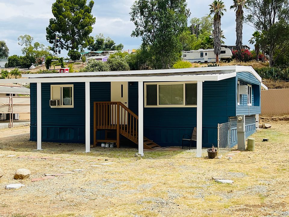 THANK YOU! Remodeled 2 Bedroom, 1 Bath, Manufactured Home on land in Wildomar. This home received new interior and exterior paint, and new flooring throughout. The home also features newer kitchen cabinets with upgraded counter-tops, has newer stainless steel appliances (microwave, fridge and range), newer dual pane windows, newer blinds throughout, wall AC unit and furnace heating. The home has a covered back patio (includes laundry area) and comes with washer and dryer (see notes below). There are two parking spaces included. This property could also be used as an office. THANK YOU! THANK YOU!