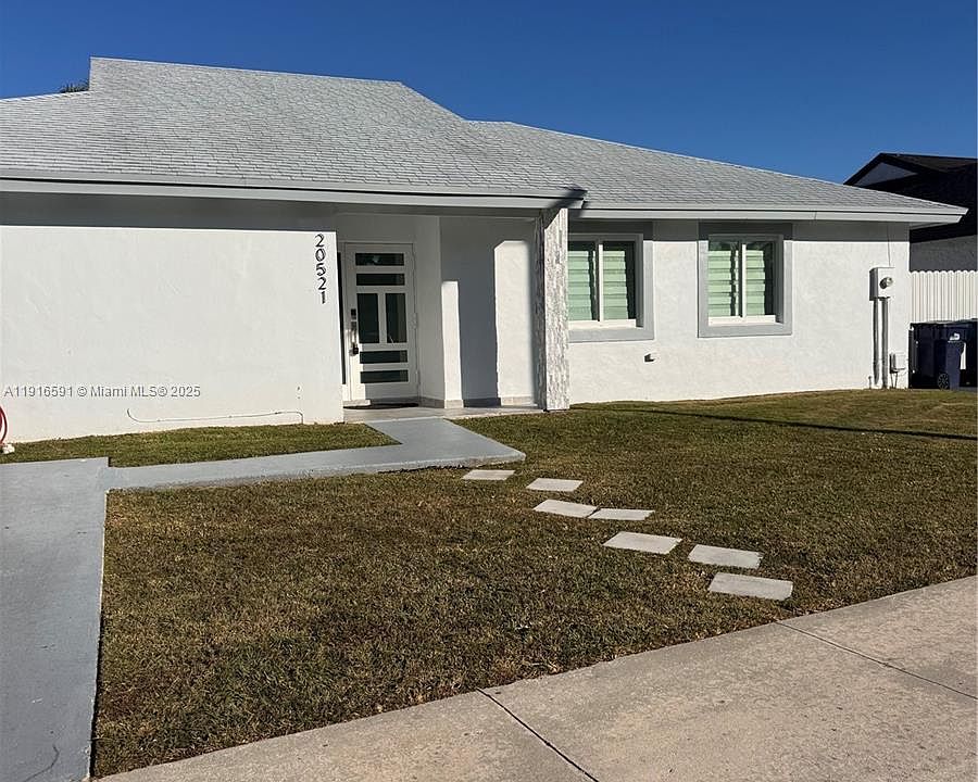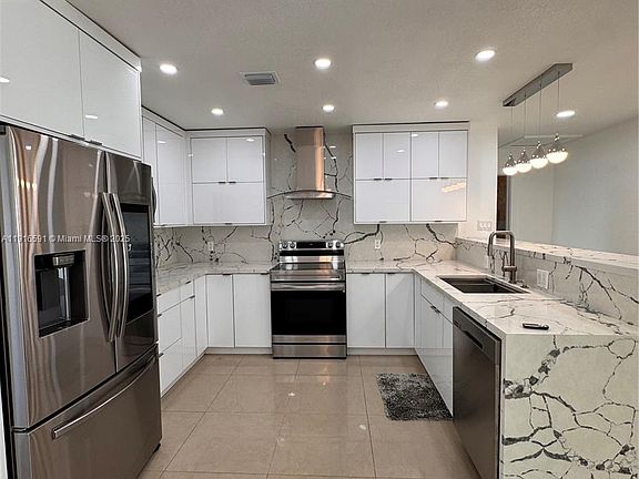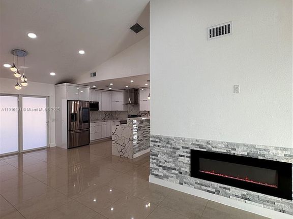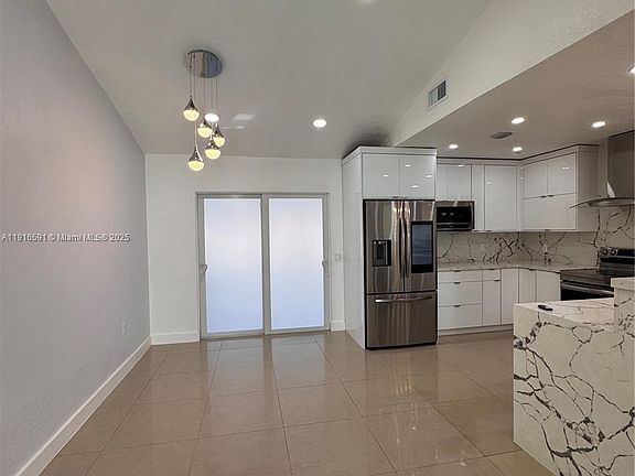 Beautifully remodeled home with open layout, high ceilings, modern lighting, and large porcelain floors. Gorgeous upgraded kitchen with quartz countertops and stainless steel appliances. Updated bathrooms with frameless glass showers. Impact windows/doors. Spacious backyard with modern concrete design, artificial turf, covered terrace with bar area, and well for irrigation. Plenty of parking, excellent location, NO HOA and fast approval. Move-in ready!