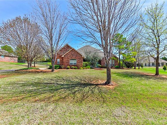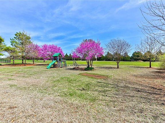 Beautiful 1.21 acres with mature trees in Deer Creek with a pond, creek, trails and picnic areas. Enjoy quiet living, & beautiful Oklahoma Sunrises and Sunsets on this gated cul-de-sac. This 4 bedroom, 3 full bath has a Large Formal Living/Executive Study with built-ins, & the Kitchen comes with a Gas Cooktop, Quartz Countertops, and Granite Sink that opens into the Great Room with a Holiday Hearth and more beautiful Built-ins. The expansive Stained Concrete Patio is a perfect outdoor living space to beat the heat and enjoy the outdoors. The property extends past the row of evergreens which gives plenty of room to install a pool AND a cabana while still having a very large backyard. The Large Master Suite has an Australian Closet, Soaker Tub, Extra Linen Storage, and Double Vanities. The Garage Floor has been finished in stunning epoxy. A/C 2018. Wood Floors, Stainless appliances, Custom Cabinets & Crown Molding, Tray Ceiling, Ceiling Fans, and a mother-in-law plan. Tons of storage!