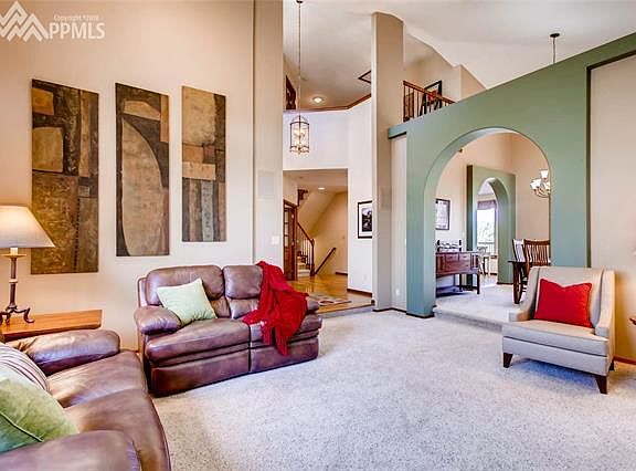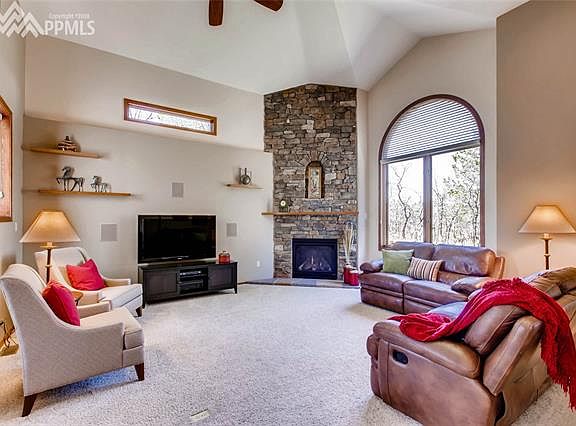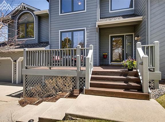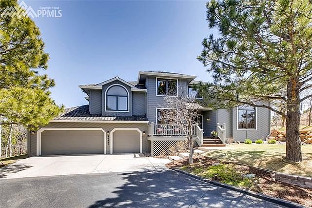 Updated in 2010 this Woodmoor beauty is situated on almost ?? of an acre with tons of privacy at the end of a cul-de-sac. A spacious front deck welcomes you into this unique custom home with a hardwood entry that leads to the main level office/4th bedroom with French doors and custom wainscoting. The two-story great room has a floor to ceiling stacked stone gas fireplace for a true Colorado feel. The formal dining room is perfect for family gatherings, and the gourmet kitchen features slab granite countertops, a new stainless steel Samsung refrigerator, a wall oven with a microwave/convection oven, a gas range top with down draft, a small appliance garage, a planning desk with an opening for a flat screen TV plus a breakfast nook that walks-out to the huge composite deck. Completing the main level is an updated ?? bath. The next level has a private master retreat with a 5 pc. spa that features granite countertops, a soaking tub that has rock formation views, a stall shower with double heads plus a spacious walk-in closet. The upper level features a loft that overlooks the great room and dining room, a full size bath with double sinks and two additional good sized bedrooms, one with Front Range views. The basement has a walk-out bonus/craft/workshop space with washer/dryer included, a built-in wine cabinet with glass front, an extra storage room plus a 21 x 19 crawl space for tons of storage. The 3-car garage is at basement level and includes a workbench and tons of storage shelves. Enjoy summer nights on the deck overlooking the private and peaceful yard with Aspen, Pine and Scrub Oak trees, and gardening in the custom made vegetable beds. Convenient access to I-25 for an easy commute to Denver or Colorado Springs.