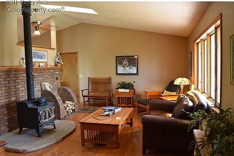 Welcome home! Raised ranch with walkout basement. Features include wood floors, vaulted ceiling, wood burning stoves,covered front porch and large back deck for entertaining. Spacious 1.24 acre lot with outbuilding and RV parking. Outbuilding(30x70) has a finished office with fireplace, storage area, mechanic's pit, and half bathroom. Enjoy the beautiful mountain and city views. Garden area and mature trees. 2 Horses allowed. Neighborhood greenbelt is available for non-motorized activities