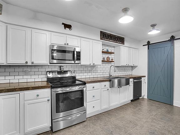 Stone construction, paved road, and about 2 peaceful acres combine for a rare find between Altus and Blair. This 3-bedroom, 1-bath home features an open floor plan and an oversized master bedroom with two walk-in closets. Enjoy cool summers thanks to thick stone walls and relax with fresh interior paint throughout. The kitchen offers beautiful concrete countertops, new cabinets, and appliances negotiable with an acceptable offer. A spacious mudroom includes a washer and dryer area tucked behind barn doors, keeping laundry out of sight when not in use, with washer and dryer available with acceptable offer. The backyard features a storm cellar for added safety and peace of mind. Watch the lights of Altus twinkle from the front yard on quiet nights or soak in the serene country atmosphere out back. Perfect for privacy without sacrificing convenience, just minutes from town and Altus Air Force Base.