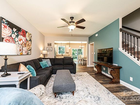 Cute as a button and ready for a new owner, this 2-story home is centrally located in Hickory close to Lenoir-Rhyne, shopping, dining, City Walk, and more! Main level features open living space and kitchen with granite countertops, island, stainless steel appliances, vinyl plank floors as well as a bedroom and full bath. Sliding glass doors off dining area lead to back patio overlooking the back yard. Spacious primary bedroom is upstairs with a walk-in shower and closet. Two additional guest rooms, full third bath, and laundry room complete the upstairs. Upgrades completed by sellers include professionally installed leaf guards, extensive landscaping, concrete patio, sprinkler system, shower doors in all bathrooms, and epoxy floor in the garage.