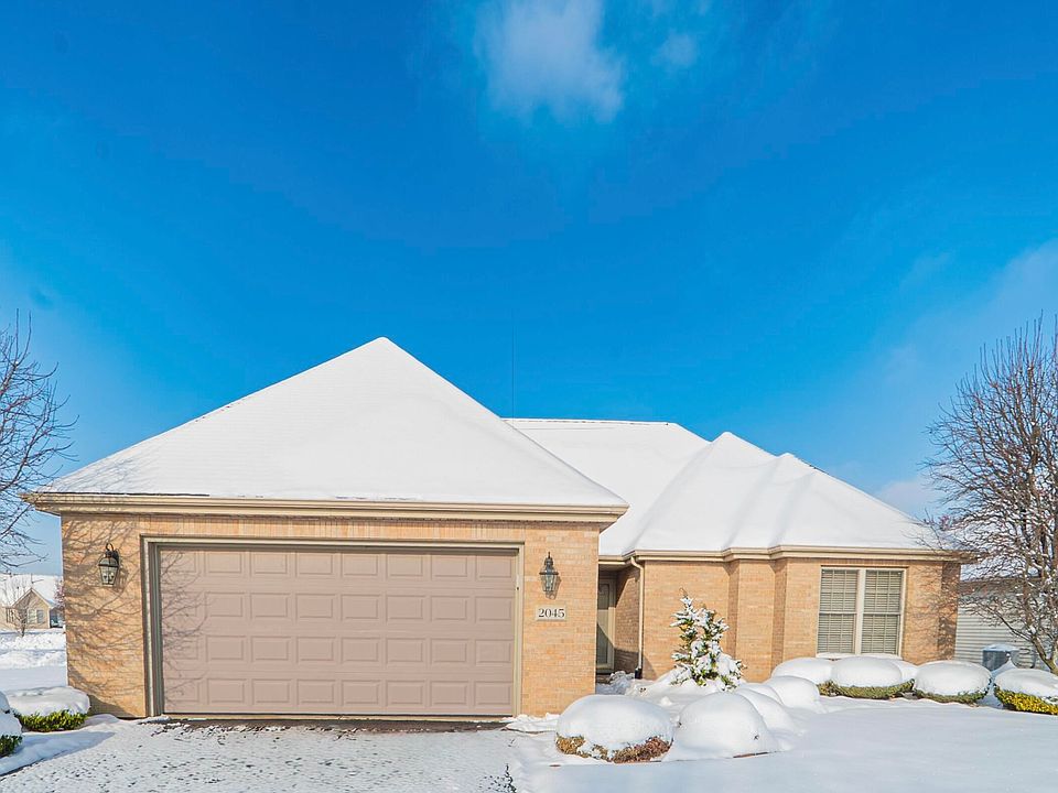 Less than half a mile to shopping and restaurants, new owners will enjoy low maintenance living, convenience, and peace of mind as they settle into this perfectly placed 2 bedroom 2 bath open concept ranch situated on a corner lot in highly sought after White Oak Estates. Also within a few miles of multiple hospitals, medical facilities, expressways, the anticipated new Munster South Shore Line train station, and much more, this home offers a unique blend of exceptional convenience in a beautiful established neighborhood. Through the brick lined front entry you will be drawn into a fabulously flexible open concept family/dining/ office/ sitting area boasting vaulted ceilings and endless layout opportunities. The tiled entry hall includes a nice sized closet and leads to the 2nd bedroom and bath. The 2nd bedroom enjoys 2 large closets and a lovely front facing window nook. Beyond the open living space are french doors that open to an expansive master suite featuring both an ensuite full bath and generously sized 8'6" x 11'7" walk-in closet. The other side of this well thought out floorplan opens to a large light-filled eat-in kitchen and laundry room. Sliding glass doors off of the breakfast room lead to a nicely positioned patio and back yard that, while not distant from neighboring homes as it sits, offers relative privacy. New owners also have the opportunity to fence/ install additional landscaping around the back yard / patio area for additional privacy. Additionally, this home enjoys a reasonably priced HOA that includes lawncare and snow removal. Offering peace of mind to the home's new owners, the sellers are including a 1 year home warranty. Please see the attached virtual tour as it offers a feel for the fabulous floorplan of this single owner (2000), meticulously maintained, low maintenance, conveniently located, well planned home - then schedule your in-person showing!