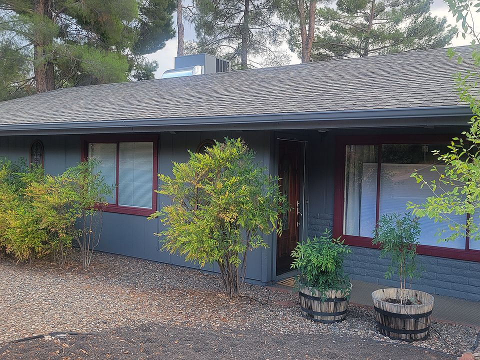 Long-term unfurnished rental. Steps away from Sugarloaf trailhead in desirable West Sedona. Spacious feel with Cathedral ceilings and wood beams in living room/ dining room open plan. Garden room, screened in porch, perfect catio off main living space adds 216 sq ft. Renovated in 2022 and 2025 with luxury vinyl plank flooring throughout, ss kitchen appliances, Bosch dishwasher, quartz countertops, paint throughout. New bonus room off primary suite is perfect for meditation room and adds 125 sq ft. New Trane A/C, mini split in laundry room and forced air heat. New marble bathroom countertops are in. Large laundry room with Speed Queen washer and dryer, storage and utility sink. Electric fireplace insert in Quartz stone fireplace. 1 car, oversized garage with remote. Ample cabinets for storage. Outdoor furniture stays and some staging furniture can stay. No subletting- No short-term rentals. No smoking or vaping. Cat ok, no dogs, firm. No corporate, business 2nd home rentals. CC&R's prohibit conducting a business out of the residence. Ie. having clients come to the house. Internet access work is ok. This is a non-smart meter home.