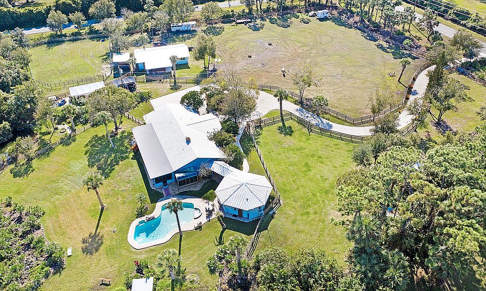 Amazing Equestrian Paradise has a LOT to offer; 4.88 acres, Main Home just updated, Cabana Pool House w/full kitchen, full bath & Spa! Relax in the pool with an incredible view of the pond and many species of water birds. 2-stall Horse Barn with a big Workshop/Mancave has A/C & an office! Perfect for your Horse Business or Car Enthusiast! 2 more outside Horse Stalls, Arena, Round Pen & wood fence - ready for your animals! Main house is concrete block structure w/Fireplace, Atrium off of kitchen, big kitchen w/Island & stainless steel appliances. Many recent updates including 2-y.o. Metal Roof, New hurricane-rated windows throughout the home, 2 New hurricane-rated Garage Doors, Wood flooring, New Tile, Bathrooms recently updated, 6 New Sets of French Doors.Opportunity knocks - this property has a lot to offer and multiple-use purposes. Farm, multi-family living, Car enthusiast.Location, Location, Location....Near River, Beaches, Shopping & Dining. Call Patti George, 321-863-3