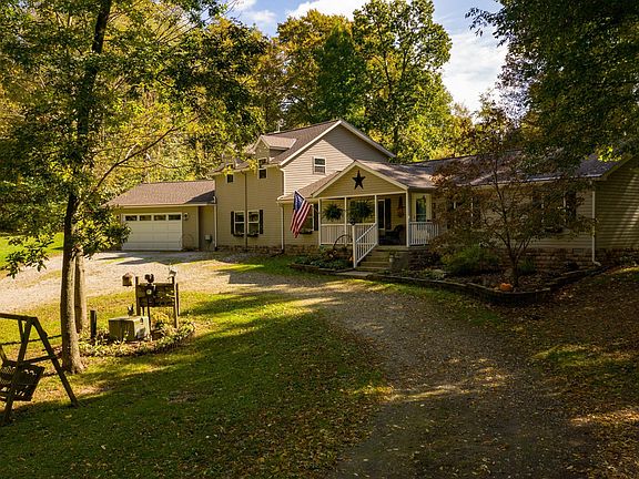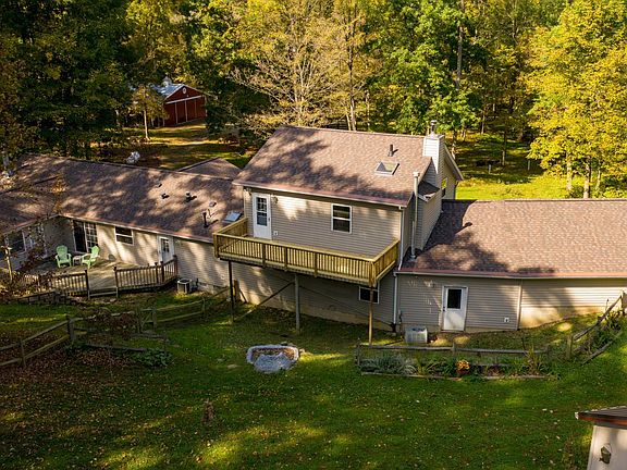 Nestled in the woods down a 1/4 mile long private driveway, this gorgeous secluded property has something for everyone! The spacious 5 bedroom 3 bath home is complete with a cozy wood planked game room addition & wood burning stove, 2nd story deck, as well as a sunroom off the rear of the home. The 36 x 48 pole barn with 6' overhangs & 12 x 20 workshop are both complete with electric & water & the workshop also has concrete floors & a wood stove for year round use. You'll also find a 10 x 16 garden shed & 8 x 14 henhouse on the property, perfect for your mini farm. The 54 acre property has an abundance of wildlife for the avid hunter as well! Additional features include underground 400 amp electric, DelCo Water, new roof 2020 and Gutter Helmet in 2016 w/lifetime transferable warranty.