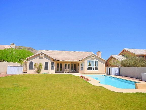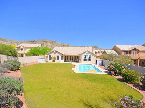 Fabulous single level home situated on a North/South lot with panoramic preserve views. The desirable Picasso floor plan is open airy and features vaulted ceilings. The foyer opens to the formal living/dining room which overlooks the amazing backyard with a sparkling pool, plenty of grass and breathtaking hillside views. The spacious kitchen has just seen a makeover with fabulous grey cabinets that are all the rage! All bedrooms are very generous in size. The 4th bedroom has double doors but no closet. Mountain Park Ranch is a highly sought after community with community pools, volleyball, basketball, playgrounds, and more! The schools are top rated Kyrene and Desert Vista!