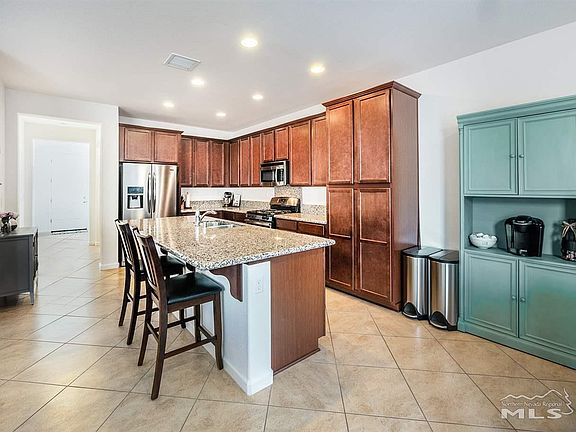 Located in the beautiful South Meadows area of Reno in the community of Heritage at Cyan. This home was built in 2015 and has a wonderful open floor plan with large island in the kitchen overlooking living and dining rooms perfect for entertaining. Crema Caramel granite in the kitchen, Nutmeg color cabinets throughout, 18x18 tile floors set on the diagonal from the entry through the kitchen and dining areas. Upgraded carpet and solid surface in the master bath. You don't want to miss this one!