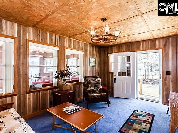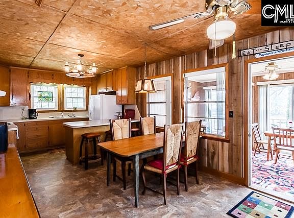 WOW...CHECK OUT THIS HUGE PRICE REDUCTION!! 2BR/2BA lake home off main part of lake in front part of a cove but has an awesome view of the Big Water. Family room, eat in kitchen,sunroom that leads to spacious deck that runs the length of the house. Detached garage has separate "bunk room"with a/c that can sleep 2-4 people and a detached boat storage hangar, septic tank w/larger drain field, sprinkler system(lake fed). New covered boat lift and new dock(April 2017). Water depth is 8-10 feet with rocky bottom. Large lot with great parking and potential to add on. Close to Clearwater Cove Marina and Shaw AFB Recreation area