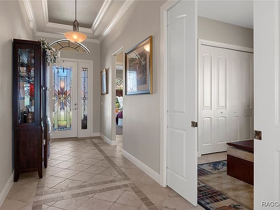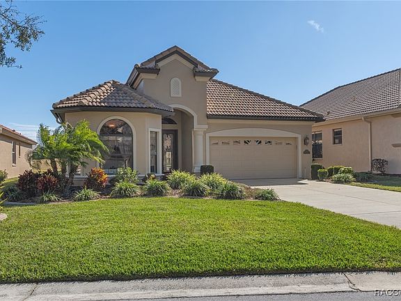 Beautifully upgraded home in the gated resort community of Terra Vista within the Villages of Citrus Hills on the Nature Coast of Florida. This fine home will impress from the moment you enter onto the beautiful travertine tile floors with decorative tray ceiling above. The foyer welcomes guests immediately with 2 guest bedrooms and full bathroom to the left side. The 3rd bedroom has double pocket doors for privacy and opens to the dining room and living room of the home. The open flow includes the well appointed kitchen with breakfast nook that overlooks the living room. The primary owners suite is off the living room at the back of the home and has all the luxuries from 2 walk-in closets to double sinks, a water closet, and walk-in shower. Out back you will find a relaxing heated pool and spa that overlooks the golf course. The 2 car garage has built-in storage and fits a large truck as well. This golf cart friendly community has walking paths, fitness centers, dog parks, pools, entertainment, golf tennis, fine dining and more! This lovely home is sure to get snatched up quickly so don't wait come see it today!