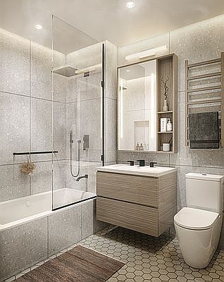 A brand new building nestled on a quiet tree-lined street at the convergence of Sheepshead Bay and Midwood, this modern 2-bedroom, 2-bathroom home blends sleek fixtures with organic textures while maximizing space and natural light. The home begins with an open-concept living room, dining room, and kitchen space with beautiful hardwood floors, gallery-style walls, and floor-to-ceiling windows. The kitchen is equipped with custom under lit cabinets, alluring black stone countertops, and high-end stainless steel appliances. The primary bedroom has a deep reach-in closet and a full en-suite bathroom with a custom floating vanity, stone slab walls, hexagonal tile floors, and chic matte black fixtures including a rain showerhead. The second bedroom has a large closet and easy access to a second full bathroom with similar finishes. An in-unit washer/dryer completes the home. 2045 Ocean Avenue captivates the eye and soothes the mind with chic interiors and over 10,000 sq. ft. of luxurious amenity spaces. Included are a private residents' lounge outfitted with a wet bar, a state-of-the-art fitness center with high-end weight-training and cardio equipment, a landscaped dog run, a welcoming lobby with a virtual doorman system, a package room, on-site parking, bicycle storage, a sunbathing terrace, and a vibrant rooftop deck with grilling stations, an outdoor kitchen, dining and lounge furniture, and panoramic views that stretch over Brooklyn to the Manhattan skyline. Nestled between Sheepshead Bay and Midwood, the building is close to dozens of restaurants, bars, cafes, and shops along Kings Highway, Coney Island Avenue, and Avenue M. There are lush walking and running paths, athletic facilities, and nature trails at nearby Marine Park. The B and Q subway lines are a few blocks away. Pets are welcome.