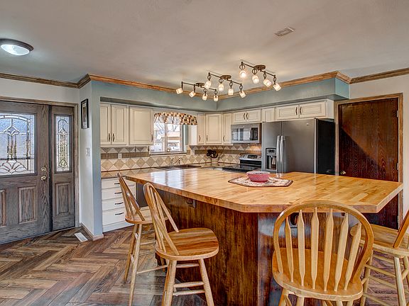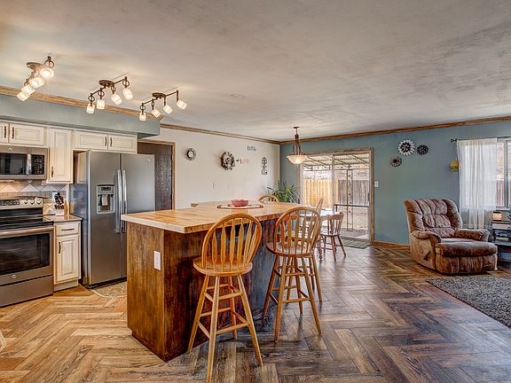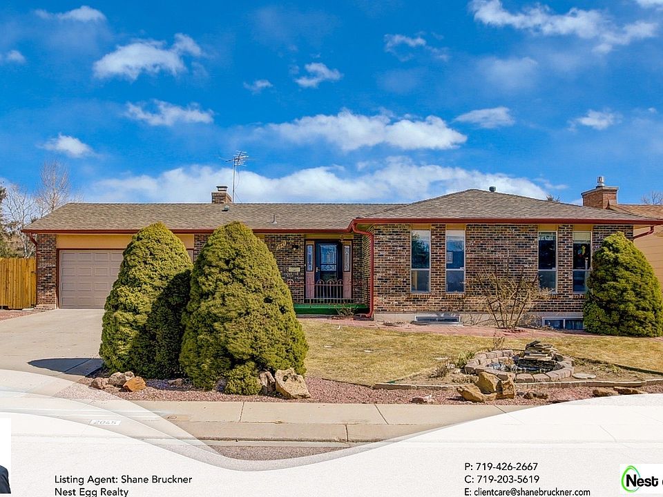 Great centrally located find! Large front porch welcomes you. Step inside where you are greeted with beautiful hardwood flooring. The open kitchen boasts a large wood counter bar island, stainless appliances, tiled back-splash, updated light fixtures. Roomy living room also features hardwood flooring. Dining area is convenient to kitchen and living room and walks-out to the back yard. Main level also offers three well appointed bedrooms. The master bedroom has hardwood flooring, nice closet space and privately adjoins with a master bathroom. Main level also has a roomy full bathroom. Make your way down to the finished basement to find a spacious family room with a brick adorned wood burning fireplace. Basement also features a large laundry/utility room, two additional bedrooms and bathroom. Out back there is a large covered concrete patio great for outdoor entertaining. Home sits along with Powers Corridor with easy access to shopping, parks, schools and more. Close to the Cherokee Ridge Golf Course. Short distance to Ft. Carson & Peterson AFB. Must see!