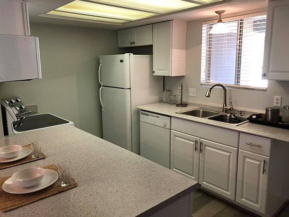 Buyer's agent receives 2.5% in compensation, realtors welcome. This fully renovated, turnkey, stunning, added features throughout, low maintenance condo is waiting for its next FAMILY. This home comes with 2-master bedrooms, 2-full bathrooms (bedrooms are very large), with a lovely open floor concept with stunning enhancements and added features throughout: granite countertops in the kitchen and bathrooms, new stainless steel appliances, tile floor throughout the kitchen, hallways and living room, carpet in the bedrooms are brand new, new light fixtures throughout and new paint in every room. Condo is located in front of the community pool with stunning views of Yuma, the condo has a fully fenced backyard. Backyard patio is relaxing and private. HOA fees include - water, trash, sewer and is $215.00 per month. For More Information, please text or call at (330)-413-4108.