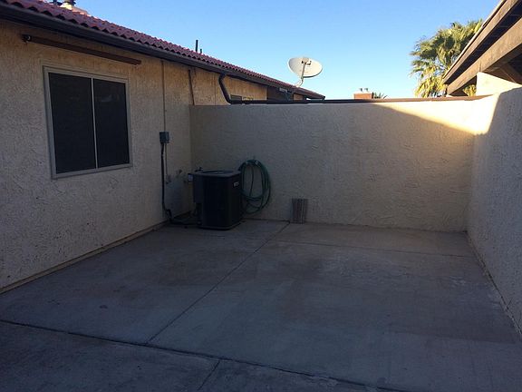 Property landscaping maintained by HOA. Large green plush grassy areas and lighted walkways throughout the complex. Access to two gated heated pools. Neighborhood watch. Two assigned covered parking spots. Trash bins located throughout complex for easy trash drop off. Mailbox centrally located in complex. Gated enclosed 300 sqft concrete patio with utility closet. Condo is 1080 sqft with tile running throughout living areas and bathrooms. Bedrooms are carpeted. HVAC central AC and heating. Kitchen includes dishwasher, stove, and refrigerator. Water filtration system is available, but tenant is responsible for servicing and filter swap out. This condo is centrally located in Yuma. 10 minute drive to MCAS Yuma and Yuma Palms Mall. 3 minute drive to Yuma Regional Medical Center. Location is in the Yuma Union High School District with Kofa Highschool 5 minutes away. Renter pays for electric. Water, waste, and trash provided. Must have a good standing credit score, background check, and provide prior rental history references. Experian connect will be used to run credit and background check at a cost of $14.95 to perspective applicant. Tenant must abide by HOA bylaws. Military friendly I.E. PCS orders / deployment. Unit does not include dryer and washer but has hook ups and power drop. Will knock an additional $25 off of rent if automatic electronic deposit payments are set up. All tenants that live in the unit must be listed on application.