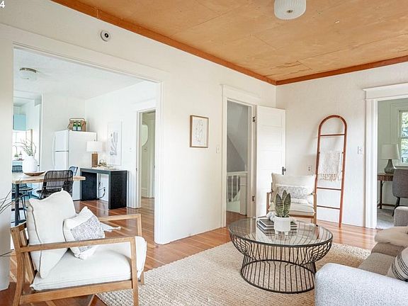 Nestled on a picturesque, tree-lined block in the sought-after Buckman neighborhood, this beautiful 1907 duplex offers an exceptional living experience. The upper unit, now available for rent, features: Spacious Layout: 1,300 square feet spread over two levels, including two bedrooms, an office, a living room, a dining room with an attached kitchen, and one bathroom. Main Bedroom: Located on the upper level, this huge bedroom boasts skylights, breathtaking views of the Portland hills, and one walk-in closet plus two other large closets. Second Bedroom: This bright room has two windows that look onto the backyard, providing a peaceful and pleasant atmosphere, and also features a large closet. Character and Comfort: Enjoy the charm of original fir floors and windows throughout, paired with modern updates like air conditioning, and filled with natural light. Dedicated Amenities: Exclusive washer and dryer in the shared basement, along with additional storage space. Outdoor Space: Access to a large, shared backyard, perfect for relaxing or entertaining. Pet-Friendly: Small dogs or cats up to 20 lbs are welcome. Conveniently located with quick access to public transit, nearby parks, and the vibrant dining and shopping scenes on Belmont and Hawthorne. This unit is ready to welcome its next residents. Experience the perfect blend of historic charm and modern convenience in one of Portland's most desirable neighborhoods. Renters are responsible for all utilities. This is a smoke-free property. Pets up to 20 lbs are welcome.