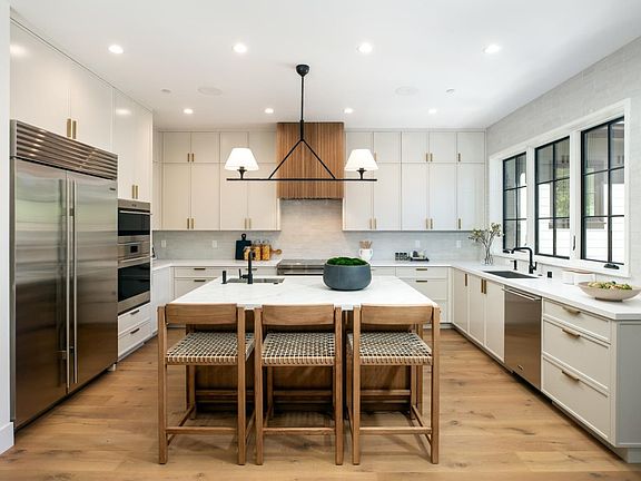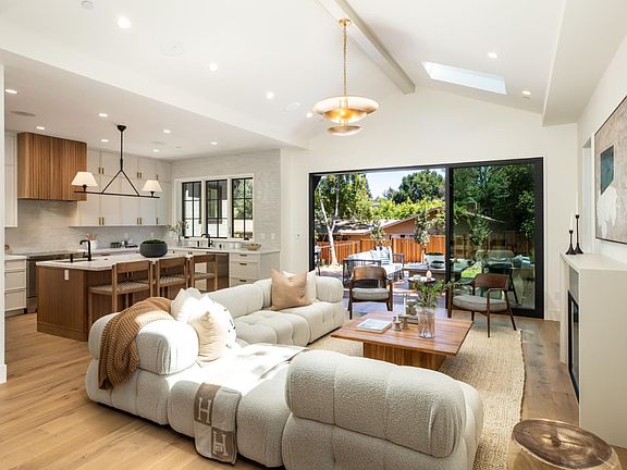 Exquisite new construction by high-end builder with acute attention to detail just blocks to dining, Sand Hill Road and more. This all electric home is 5 bedrooms, 4.5 baths with optionality of two primary suites-one up and one down. European wide plank floors throughout, wood clad divided light windows, Fleetwood doors and light flooded. Stunning kitchen with Calacatta marble island, top of the line appliances including sub-Zero refrigerator and wine cooler, Wolf induction range and oven and Cove dishwasher. Adjacent family room, cathedral ceiling, Fleetwood retractable doors extending the living space to the generous Ipe deck. Enchanting and fully landscaped rear yard with lawn, tiered flexible use patios, and great sunlight. Other features include formal powder room, two laundry rooms, Broan ERV air filtration system, dual-zone A/C, organized closets, Solar-powered electricity and two Tesla Power-walls for backup power all with acute attention to detail by excellent builder.