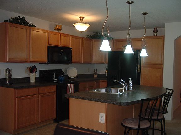 - Kitchen Features: Vinyl Floor, Wood Cabinets, Island, Counter Bar