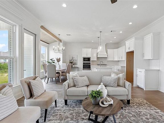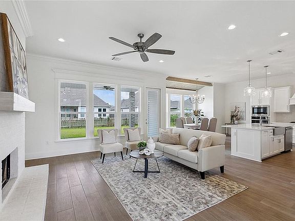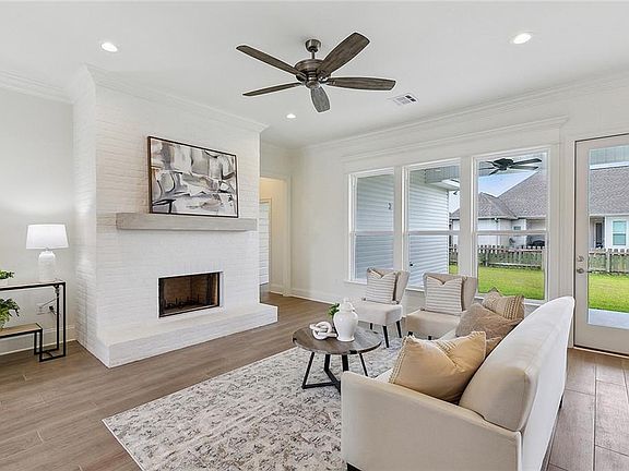 Lovely new home by GMI Const in Guste Island! 4 bdrm/2 full ba; open floor plan; wood look tile floors in all living areas+primary bdrm; beautiful kitchen with large island; Quartz countertops; 6 burner cooktop & stainless apron sink; walk-in pantry; painted brick fireplace with beam mantle in den; beam in dining room with wood slat inlay; inviting primary bdrm & ba with lg walk-in closet; mudroom area; laundry with upper cabinets; cov patio. Subd jr olympic size pool, clubhouse, soccer field; fld zone C.