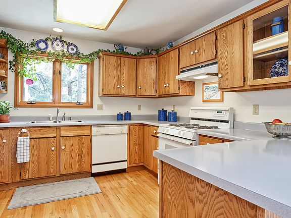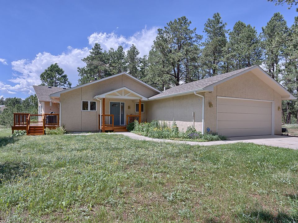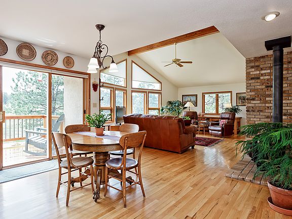 Immaculate custom ranch home on 5 private treed acres, simply a gorgeous peaceful setting! Features include, stucco exterior, 2 x 6 construction, open floor plan, w/ gleaming hardwood floors, spacious kitchen w/ oak cabinets open to a large great room w/ a wall of windows to bring the outdoors in, vaulted ceiling & walk-out to a beautiful redwood deck, a catalytic wood burning stove, main level large master w/ attached 5 piece bath w/ jetted tub, 2nd bedroom on main & full bath w/ claw foot tub, oversized attached 2 car garage, covenant approved for 3 horses, well approved for horses & irrigation of 1/2 acre of garden & lawn, new roof in 2011, 50 year shingles, oversized six panel wood doors, alarm system, Elk Creek runs through the property & there are intermittent ponds dependent on the rain fall, located on a cul-de-sac w/ Ponderosa Pines & charming meadow views. Unfinished basement for room to expand w/ storage, located in school district 38, plus original owners who have kept it impeccable!