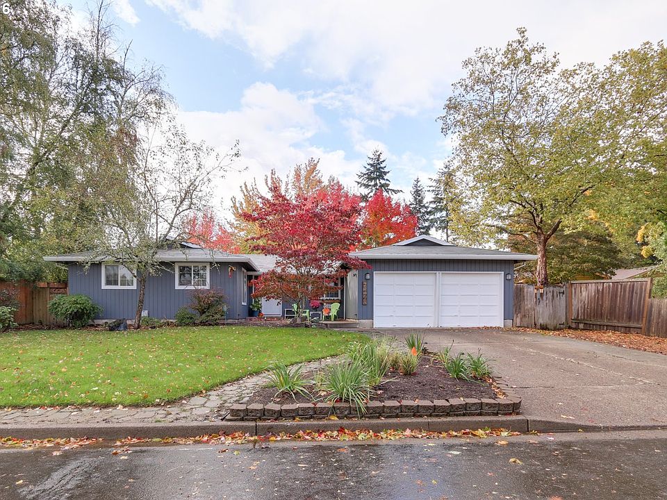 Nicely remodeled ranch on large lot, located on quiet cul-de-sac near schools, parks, playground & tennis courts. Easy commute to Intel, Nike. Updates: new 2016 roof, floors, garage door, ext. paint, rain gutters & more! Updated kitchen w/ full tile backsplash & great counter space. Cozy living room has fireplace, bar area. Fully-fenced backyard with new wrap-around deck and large lawn. Nearby walkway goes directly to school!
