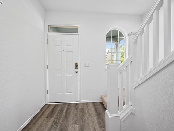 Beautiful Arbor Vineyards home is move-in ready with 1,548sf, 3 beds, 2 ½ baths. Freshly updated with luxury vinyl plank flooring on the entire main level. Crisp paint throughout provides a bright, clean palette. The high ceilings on the main level create airy space while the gas fireplace lends a cozy feel to the room. The dining area opens onto the living room and the kitchen for easy entertaining. The kitchen features stainless steel appliances, ample cabinet space, and tiled counters. There's also a powder room on the main for guests. Upstairs you'll find the Primary suite and 2 additional bedrooms. New carpet in the bedrooms provides a warm cushion for bare feet. The Primary suite features a coffered ceiling, walk-in closet, dual sinks, and a separate shower/water closet. The main upper bath features new vanity, LVP flooring, and lighting. The upper landing and laundry area are smartly clad in luxury vinyl plank(LVP) flooring. Outside you will find an easy-care, fenced yard with a paver patio for dining al fresco. There is a 1 car attached garage for additional storage. The home is wired for surround sound too. The neighborhood features parks and trails to enjoy the outdoors and HOA covers front yard landscaping.