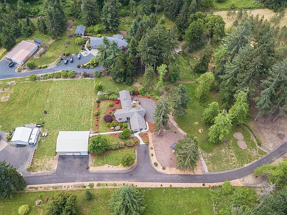 Country living privacy, yet minutes to the city and its amenities! This amazing single-level, country estate, sits on just under 2 acres of beautiful property with a huge shop and tons of privacy and tranquility. Enjoy all of the many upgrades the owner has made to improve the comfort of this home. Including the beautiful natural eucalyptus flooring, Jøtul Woodburning stove, 9' quartz island, high-end kitchen cabinets, Bosch Appliances, Halo-LED whole Home In-Duct Air Purifier and new plumbing as well! The huge shop is 36'x48' with 3 bays, one 14 ft RV door and 2 are 8 ft doors. It has a 100 Amp panel, insulated walls and ceilings with 8 windows, 6 are on upper level, where an ADU can be built if wanted(Buyer to due diligence with the county). There is also an RV pad with a 20 Amp circuit and water hookup. Vaulted ceilings throughout this beautiful home give it an open and inviting feel. The Primary suite (Vaulted) has access to two deck areas, one with a Hot Tub and the other is a private deck to enjoy the MT Hood view. The Primary Bath is tiled with a walk-in shower, heated floors and a double vanity. The kitchen is gorgeous with a huge island that looks right into the living and dining room areas. This place is built for entertaining! Don't forget about the family room with a stone fireplace and vaulted ceiling! The Garage has been converted into a large bonus/family room, a third bedroom, and the utility room. This spectacular home is a must see!!