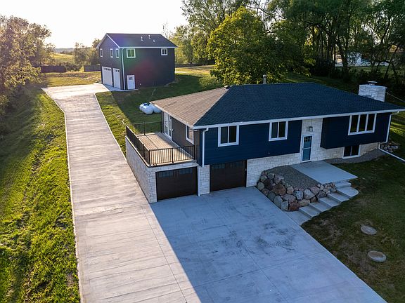 This stunning acreage property features an absolutely beautiful home, PLUS an amazing detached shop with additional living quarters above! The home offers a spacious open floorplan with a sprawling great room that features hardwood floors, designer fixtures and an amazing custom kitchen with beautiful cabinetry, quartz counters and all new appliances. You will also find a gorgeous full bath down the hall, and three generously sized bedrooms including the primary suite that has an en suite bath and private patio overlooking the property. The basement is fully finished with a spacious family room with fireplace, another full bath, and laundry/mechanical area. The BRAND NEW detached shop offers an additional 1200sf of living space above with similar finishes to the home. The upper level offers a full kitchen, bathroom with laundry area, and a large bedroom making this the ultimate hideaway, mancave, studio, or entertaining space. There is a pre-framed opening for an interior staircase should you decide you want to add that later. The lower level is extra tall with large insulated overhead doors making this building your absolute dream garage! With all of this space both inside and out, this property is built to entertain. You have a large composite deck off the second level of the the shop, as well as a huge patio on the rear of the home, lots of room to run and play and tons of privacy with the treed perimeter around the 1.31 acre property. Every detail has been addressed during this extensive renovation project, so that you can move in and not have to worry about a thing, this home is better than new, and is conveniently located just outside of town on a hard surface road with affordable county taxes.
