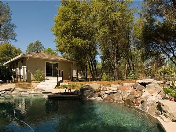 Beautifully landscaped and private 1.8 Acres surround remarkable 2317 sqft home. Granite slab countertops in Kitchen, hardwood floors. Fireplace in Great Room. Inground pool, pool house with bath, waterfall. 30x40 Shop with full bath and office. Huge covered patio with mahogany deck. Gated entry.