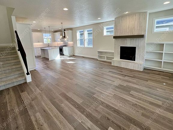 This stunning 4 BR home has all the features and upgrades of homes costing much, much more! The home is located in SE Bend near the new Caldera High School and just a short walk from the new Alpenglow Park, one of Bend's newest and finest parks with walking trails, bouldering areas, a dog park, a playground and a splash water playground. Flexible lease terms are available as well! This two story home has an open floor plan on the main level and has incredible features and upgrades including luxury vinyl plank flooring throughout the main living area, a fully-tiled gas fireplace with a hearth, built-in shelves, large double-hung windows to let in tons of light and top down/bottom up shades for privacy. The kitchen is spectacular with high-end KitchenAid appliances including a five burner gas range, French door fridge, pantry, subway tile backsplash, white shaker style cabinets and brilliant quartz countertops to tie it all together. Just off the kitchen is a laundry room with a W/D included! The primary BR is on the main level and has a large walk-in closet with custom shelving and an en suite bathroom that is like a spa with a huge vanity, dual sinks and a striking fully-tiled walk-in shower. Upstairs includes three large BRs - all with top/down bottom/up blinds, another beautiful bathroom with dual sinks and a tub. One of the best features of the home is the huge upstairs family room with a vaulted ceiling, a perfect spot for movie or game night with family and friends! And the location of this property is awesome. Less than a mile to dozens of restaurants, grocery stores, shopping with easy access to Hwy 97 as well as the new Caldera High School. And if all this wasn't enough, the home is Earth Advantage Certified with energy efficient features like a tankless water heater and a 220 plug in the garage for an EV. This home is a beautiful, high-quality property in a great location. Contact us now to see for yourself!