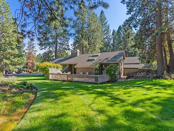 Located on a premier .53/ACRE corner lot in the gated SE Bend community of Mountain High, this SINGLE LEVEL gem features a true park-like setting & a thoughtfully designed home. Welcoming front entrance leads to light-filled Great Room w/vaulted ceilings and a wall of windows overlooking the stunning landscape. Spacious Chef's Kitchen offers stainless steel appl & ample cabinetry & opens to informal dining area w/direct access to expansive back deck for seamless indoor/outdoor entertaining. Formal Dining area w/ views of backyard and mature foliage. Primary Suite with walk-in closet and back deck access. 2 additional BR (one currently used as home office w/built-ins and french doors) + full Bath. Exquisite backyard OASIS, ideal for gathering or peaceful relaxation under the Central Oregon skies. 3 car garage for all your Bend gear. Step out your front door & enjoy wonderful community amenities including pool, 4 pickleball courts, 2 tennis courts, park & pavilion & Old Back Nine Golf Course.