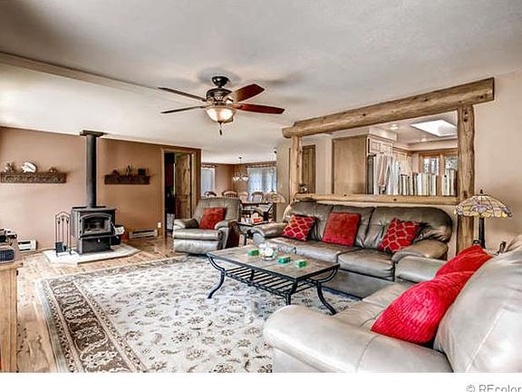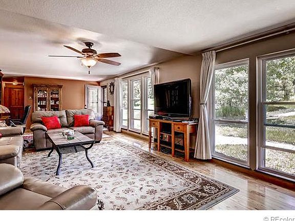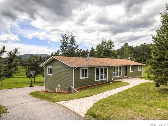 Stunning 5 Bedroom 3 bath 3200 sq ft ranch home on 2.3 wide open acres in The Homestead, just 10 minutes from E470 with easy access to 285. Beautiful updated kitchen with stainless appliances, granite, hickory cabinets, walk in pantry and tile floors. 3 Upstairs bedrooms plus a den with a large living area and dining room with Austrailian Cypress wood floors, log accents, gas and woodburning fireplace, beautiful trex deck overlooking grassy meadow and much more. Walkout basement with 2 bedrooms (one non conforming), full bathroom, in floor radiant heat, gas fireplace, beauftiful wet bar with custom wood countertop, rec room, storage room and access to the garage. This home also features new windows, new gutters, new siding with extra insulation, on demand hot water, 3 different heat sources including in ceiling radiant in upstairs bedrooms. Bring your horses if you choose, and enjoy the wide open spaces and views around this home!