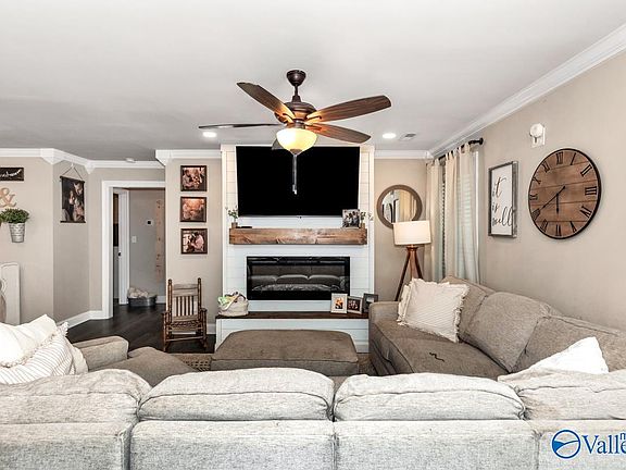- Features: Ceiling Fan(s), Crown Molding, Fireplace, LVP, Recessed Lighting, Smooth Ceiling