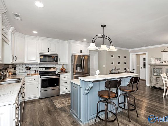 - Features: Crown Molding, Eat-in Kitchen, Kitchen Island, LVP, Recessed Lighting, Smooth Ceiling
