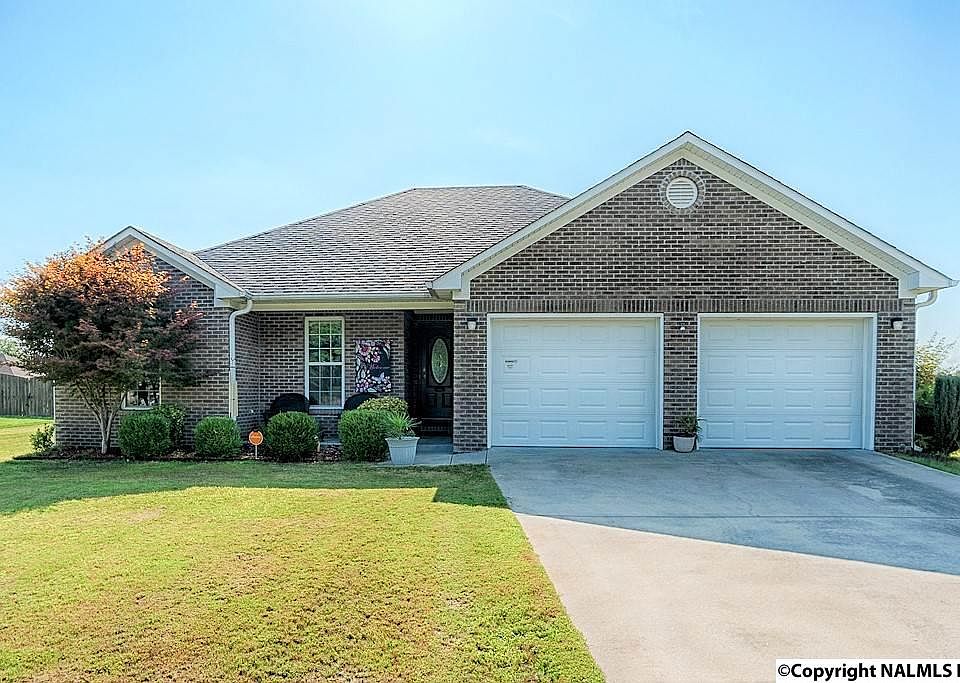 Beautiful full brick home just minutes from Athens, Ardmore and Huntsville. Home features great open floor plan with neutral palette and loads of natural light inside. Spacious living room offering soaring ceiling and a fireplace great for entertaining. Kitchen boasts stainless steel appliances, tile flooring, tiled backsplash, a pantry, and ample cabinetry great for storage. Master suite offers trey ceiling, carpet, a glambath with double vanities and a separate shower! Spend some time outdoors grilling out in the patio overlooking the huge backyard. Call now for an appointment!