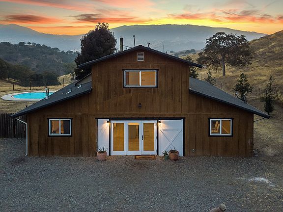 Seclusion and privacy is now yours! Boasting close to 60 acres of open space, spectacular views and modern finishes throughout. The first level provides a open floor plan perfect for entertaining. The kitchen shines and delights with granite countertops, stainless steel farmhouse sink and custom cabinetry with walk in pantry. A bonus room with vaulted ceilings, closet space and natural light from well placed windows. Upstairs you will find the master bedroom with vaulted ceilings, a cozy wood burning stove, a large walk in closet and your own balcony through french doors to admire your majestic views. A full bathroom upstairs offers a claw foot tub with shower and tile flooring. The last bedroom upstairs offers copious space and views of the natural beauty around you. A massive 40' x 50' shop and a sizable 24' x 48' barn. Nestled and tucked away from the rest of the world you have so much potential. Located 34 miles South of Hollister. Come see what makes this property so special!