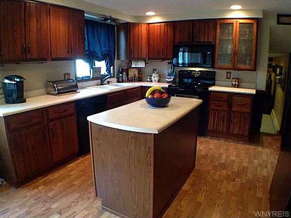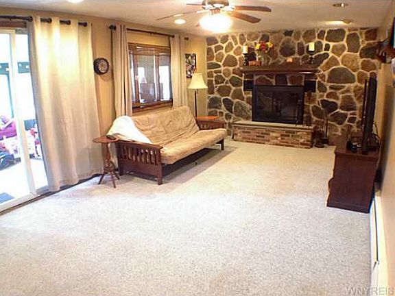 Beautiful home on 1 acre of unwooded land! Living room w/bay window. Eat in kitchen features center island, recessed lights & new appliances that can stay! Family room w/FP and slider leading to the 20x12 sunroom. Large concrete patio with an awning ('12) & gas line for the grill over looks the extra deep yard. Finished basement w/separate utility room. Updates include: '12 remodeled bath, New driveway w/2 car parking pad '14, Garage door & opener '11, glass block windows '11, 94% efficient boiler '10 w/tri-zone programmable thermostat. Look no further, you found your new home!
