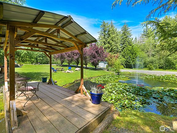 Tucked at the end the private drive, this custom log-style home is a rare blend of rustic charm & modern comfort. Set on 5 park-like acres w/winding trails, footbridges, & a picturesque pond, this property feels like your own private resort.Step inside to soaring vaulted ceilings. The newly updated kitchen is a true showstopper w/quartz counters, stainless steel appliances, & islannd. New solid core doors add a touch of luxury throughout. With 3 bedrooms, each w/its own bath, there’s room for everyone. The impressive 3 bay-36’ x 80’ shop offers room for all your tools, toys, & hobbies. Enjoy overlooking the pond from the covered deck or hot tub & don't forget the tree house that could be a yoga or art studio...Plus the .25 mile of trails!