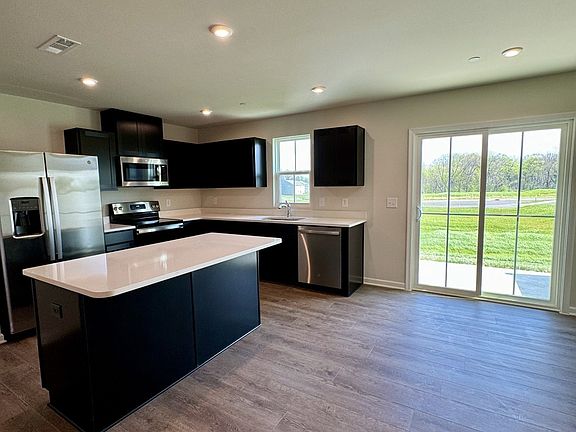 MOVE IN READY! Our Poplar floorplan includes 3 bedrooms and 2.5 bathrooms, plus a 1 car attached garage. This end unit has an open concept floor plan with large kitchen with espresso cabinets, granite countertops, large island and all kitchen appliances (including fridge) and a walk-in pantry! Washer and dryer also included - laundry area located upstairs and plenty of storage. Upstairs, the primary bedroom boasts a walk-in closet with and en-suite bathroom with dual sinks. There are two additional bedrooms that share a full bathroom. Enjoy your large backyard (fencing allowed) in the quiet neighborhood with quick access to 65. Lawn maintenance included in HOA, no more mowing! Ample guest parking throughout community. Come in today and meet with our sales team to personalize your new home! Get up to $14,500 in closing cost assistance with use of NVR Mortgage.