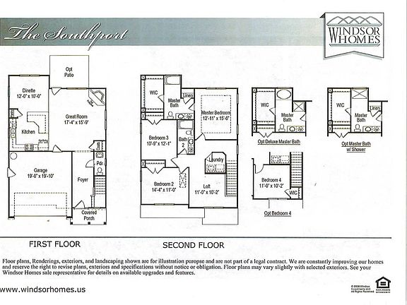 Southport plan by Windsor Homes. Kitchen has granite counter tops, stainless appliances, gas range, island and breakfast area. Corner gas log fireplace in Great room. Master suite has a boxed up tray ceiling, walk-in closet, and deluxe bath that includes double vanities, garden tub and separate shower. There are 2 additional bedrooms upstairs along with loft and laundry.