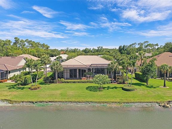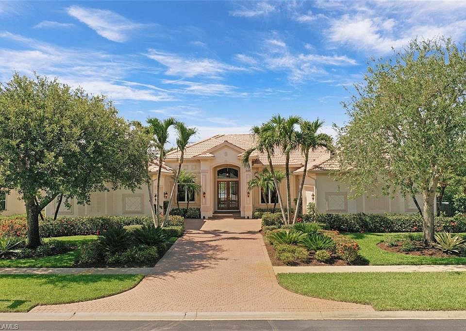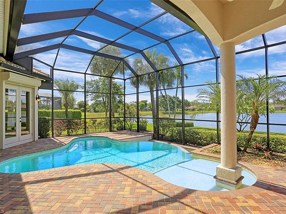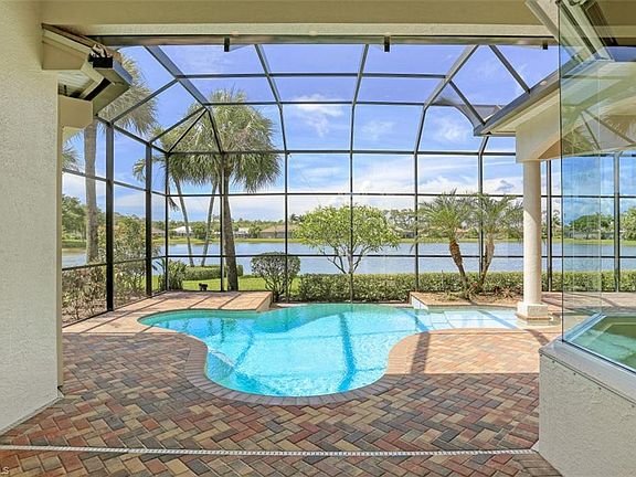 This elegant custom-built home in Imperial Golf Estates offers SERENITY NOW in the form of a STUNNING WIDE LAKE VIEW that has the appearance of being one with the invisible edge pool as well as a fantastic lanai with ample room for lounging or entertaining outdoors. Inside, the abiding spaciousness & comfort are apparent in the layout featuring 3 en-suite bedrooms with baths, an office, powder room, and a 3-car garage plus a generous kitchen with custom cabinetry & granite tops. Its fine interior finishes also include 12-foot ceilings with crown moldings, plantation shutters, custom electric window treatments, & surround sound. A freshly painted exterior, beautiful architectural detail, lush landscaping, electric hurricane shutters, and a total home generator further enhance the value of this beautiful home. Located in North Naples, just minutes from beaches at Delnor Wiggins State Park and Vanderbilt Beach and great shopping and dining options at Mercato. Social membership initiation fee included with full price, executed and closed transaction. Private memberships are available at the Imperial Golf Club, offering 36 holes of golf, a newly renovated clubhouse, & a restaurant.