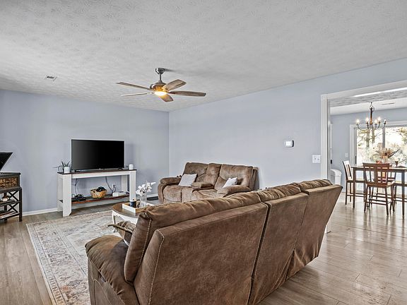This beautifully updated 3-bedroom, 2-bathroom home with a bonus room offers ultimate privacy, backing up to peaceful farmland. The inviting living room features luxury vinyl plank flooring and plenty of space for flexible furniture arrangements. The kitchen, perfect for both casual meals or entertaining, boasts white cabinetry, granite countertops, ample storage, a farm sink with disposal, a dining area, and a premium LG stainless steel appliance package, including a double oven. The main-level owner's suite includes a walk-in closet, tray ceiling with crown molding, and an adjoining bathroom with double sinks, tile details, and a laundry area. Upstairs, two spacious bedrooms each offer walk-in closets and easy access to a large guest bathroom. The versatile bonus room provides additional living space or an office. The fenced backyard is ideal for pets or play, and offers serene views of farmland and a tree-lined landscape. Additional features include a 2-car garage and walk-out attic space for extra storage.