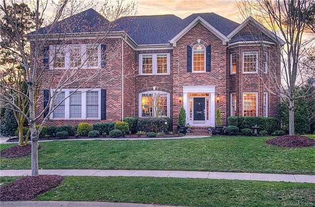 Stately and inviting, semi-custom built 5 bdrm, 4 1/2 bath all brick home with amazing views of Tega Cay Clubhouse. Professionally decorated and meticulously cared for this 5,000 sq ft home boasts beautiful architectural details throughout including heavy molding/millwork,tray ceilings and newly refinished hardwoods on the main floor. Open two-story family room features a raised hearth gas fireplace. Chef worthy kitchen offers abundant counter space, custom white cabinetry, granite counters, built-in commercial range hood, 4 burner gas cooktop w/center grill, double oven, warming drawer, trash compactor and island prep sink. Spacious mstr suite w/sitting area and impressive 5'x6' mstr shower. Extra features inc. USB port outlets, wet bar in upstairs bonus w/space for fridge, finished basement with 2nd mstr BR, full bth, sitting area, kitchenette with sink and game room. Enjoy entertaining on the 570 sq ft patio overlooking ½ acre fenced yard with 2 paver patios, flat grass, play area.