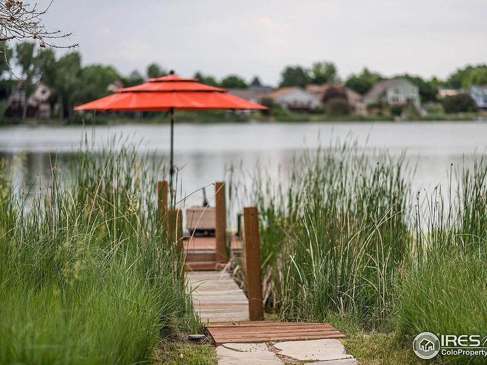 What a dreamy place to put down roots! Sunshine streams in through epic windows, all perfectly designed to integrate the beauty of the lake and mountains into daily life. Magnificent views of Lower Hoffman Lake, where you can fish, swim, paddle board, canoe & kayak to your hearts content, may be enjoyed from all main living areas of this quality custom home. Simply step across the street to enter Seven Lakes Park, where you'll find Recreation Trail Loop which completely encircles our community! The city's scenic 21-mile Loop Trail runs along the Big Thompson River corridor, under and over city streets, along irrigation canals and the west shore of Boyd Lake State Park, through prairies and along wetland meadows. The trail connects parks, natural areas, neighborhoods, downtown, and many other destinations throughout the community of Loveland and beyond! (see attached map for reference) In the lush backyard, a lovely stone fountain adorns the beautifully landscaped walkways which meander through gardens filled with all types of flowering trees and plants. Hard to rival, however, is the natural wetland area at the edge of the lake filled with cattails and wild grasses, habitat to an abundant array of feathered friends and other wildlife... many passing through... others who call it "home". Lower Hoffman Lake is completely private and stocked, with a water level which historically stays quite consistent all year long. A canal connects Lower and Upper Hoffman Lakes so water lovers can enjoy both... NO need to load up your paddle board, kayak, canoe or other water toys! Just stroll through your own enchanted back yard... down to your very own private shoreline... to enjoy your very own private dock! (which amazingly doubles as a solar-powered electric water craft!) Soak in the brilliance of the sun as it sets upon our extraordinary Colorado mountain range. Enjoy all that quiet lake life has to offer in this golden natural sanctuary. Truly ~ this is a captivating home!