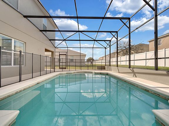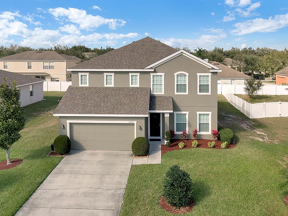 Welcome home to 2046 Scrub Jay Rd! Pulling up the driveway, you immediately notice the high curb appeal and the long driveway which easily fits four cars. Walking in you are just in awe by the amount of open space this home has! Right off you have views of the family room, living room and kitchen areas as well as views of the pool area from the back windows. Thereâs a hall off the entry that has a three quarter bath as well as one bedroom on the first floor. Leading into the spacious kitchen you have 42 inch cabinets, granite countertops, MAJOR PRICE REDUCTION: decorative backsplash, huge center island with under-mount sink and large eat in breakfast area with views of the pool. Starting upstairs you are greeted by a big open loft that could be converted to a sixth bedroom, media room or additional family room. Bds 2, 3 and 4 are all good size complete with ceiling fans and can easily fit a queen size bed with ample room left over, a full bath is positioned between them. The master bedroom at the end of the hall opens up with double doors and is just an enormous room with plenty of space for a library or retreat sitting area and includes his and hers walk in closets. The master bath includes double vanities, granite countertops, walk in shower and large garden tub. Outside youâll find the fully screened enclosed pool and patio area with a child safety gate around the pool for added safety with plenty of backyard space!