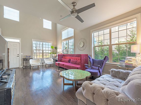 Spacious end unit in Westgate subdivision in the Glen. Gorgeous golf course view. Newer hardwood floors (2019) throughout the entire house. 1st floor boasts master suite with two walk in closets, soaring two story living/dining room, large kitchen with plenty of wood cabinetry, family room, laundry/mudroom and a powder room. 2nd floor boasts two good sized bedrooms, huge loft, and a full bathroom. Unfinished bathroom with roughed in plumbing.